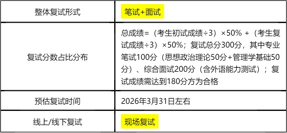 客观分析一波,西南医科大学全日制MPA复试整体淘汰率33%,不算低,复试时间预计在 2026 年 3 月 31 日左右,查分时间和复试时间间隔较短,大家需要提前筹备复试,避免临时抱佛脚。整体上复试以笔试+面试为主,其中面试形式为线下个面,需提前熟悉个面流程和答题技巧。
