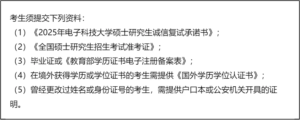 三、 复试资格审查需要准备的材料