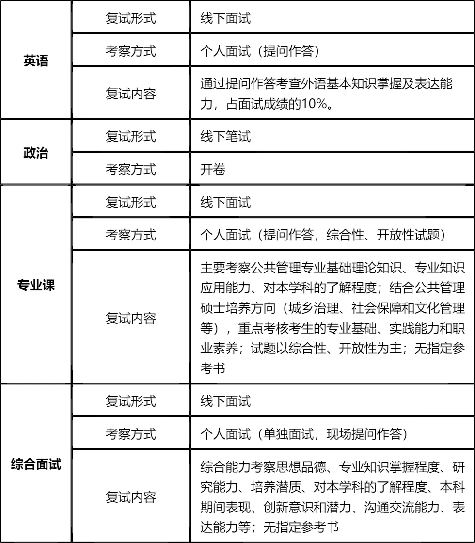 复试备考的核心是“稳扎稳打、突出重点”。重点在于政治考核的合格性、专业课和面试的表达逻辑性,以及同等学力加试的通过性。政治开卷考试看似简单,实则需要对核心文件和热点问题有深入理解,否则难以组织出高质量答案;专业课要围绕城乡治理、社会保障和文化管理等培养方向复习,结合真题积累答题思路。