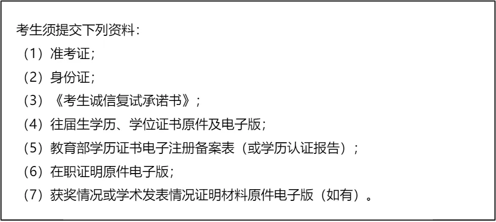 三、 复试资格审查需要准备的材料