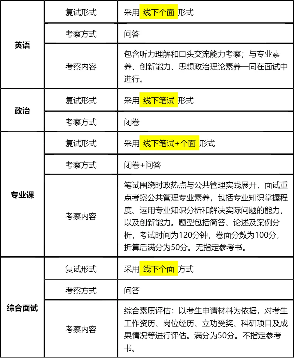 客观分析一波,复旦大学非全日制MPA复试整体淘汰率较低(仅2%),复试时间预计在2026年3月29日前后,查分后准备时间有限,建议提前启动复试备考。整体复试以笔试+面试为主,其中面试形式均为线下个面,需重点训练问答应对技巧和专业表达能力。