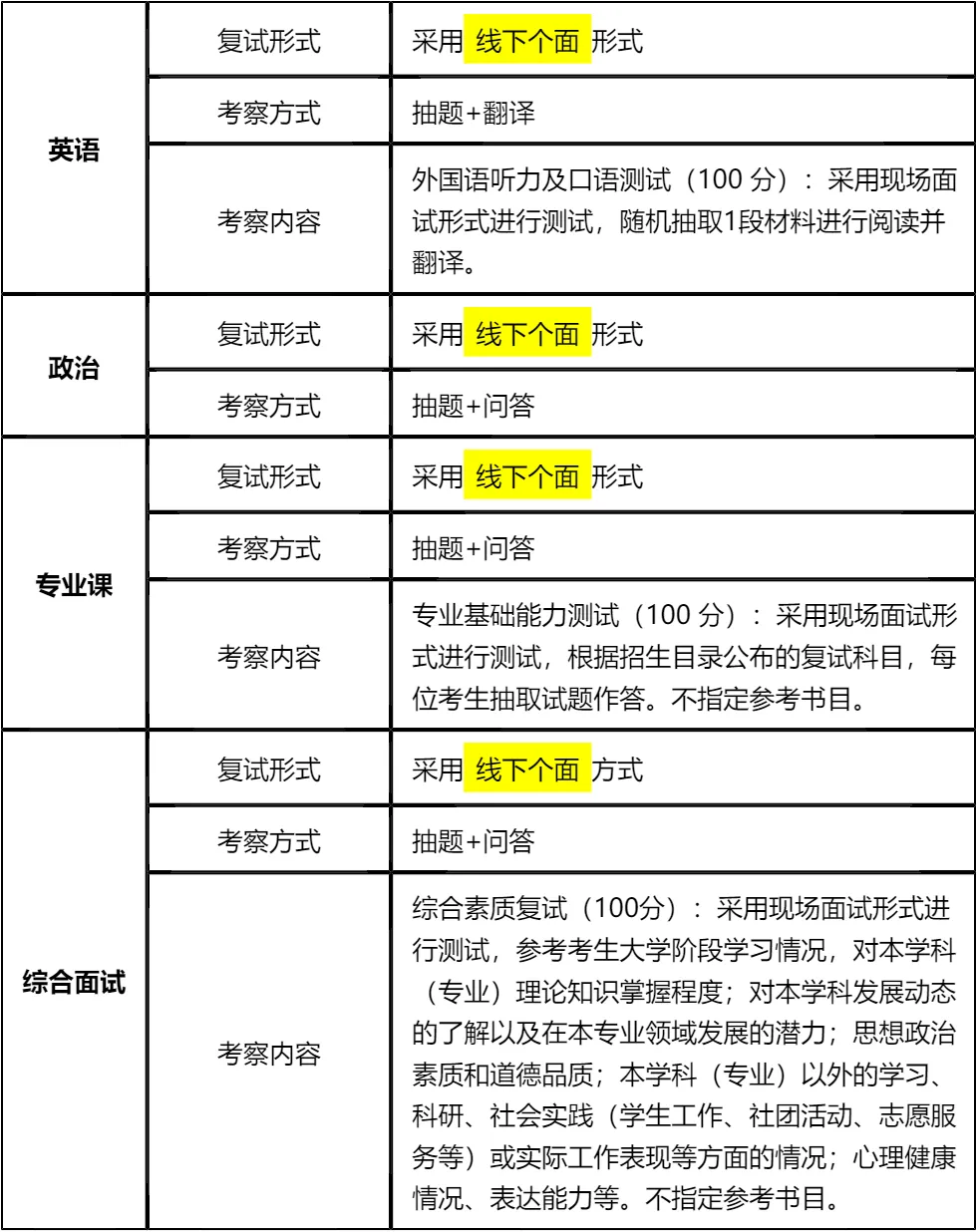 二、 各个学科的复试考察细节