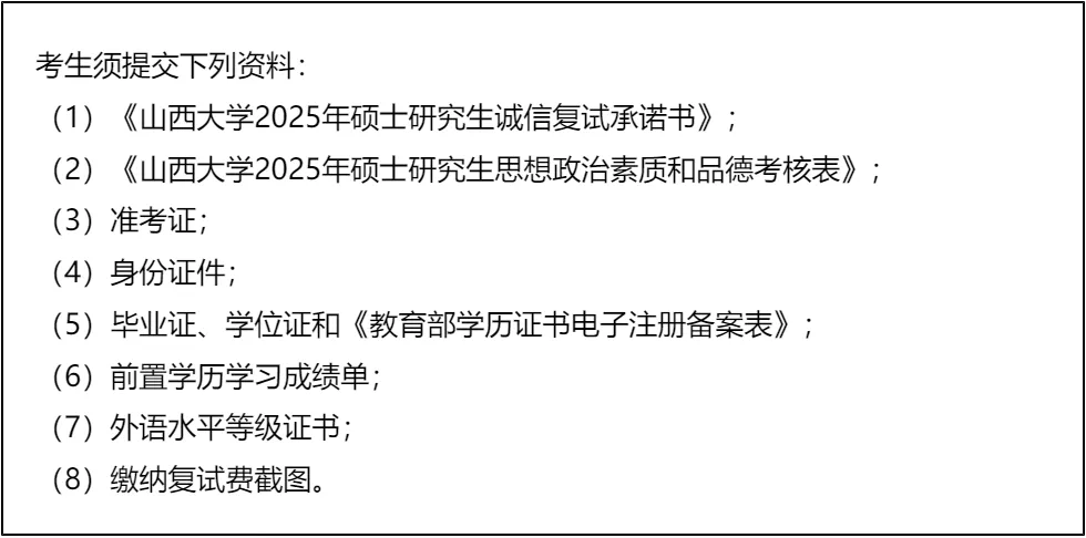 三、 复试资格审查需要准备的材料
