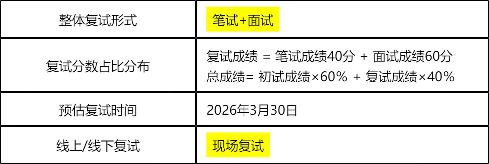 客观分析一波,内蒙古财经大学非全日制MPA复试整体淘汰率24%,属于中等淘汰水平,复试时间预计在 2026 年 3 月 30 日,查分时间和复试时间间隔有限,大家需要提前启动复试准备,避免临时抱佛脚。整体复试以笔试+面试为主,面试形式均为线下个面,需要重点练习个面应答逻辑和表达能力。