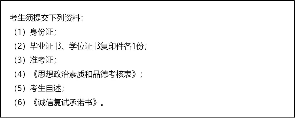 三、 复试资格审查需要准备的材料