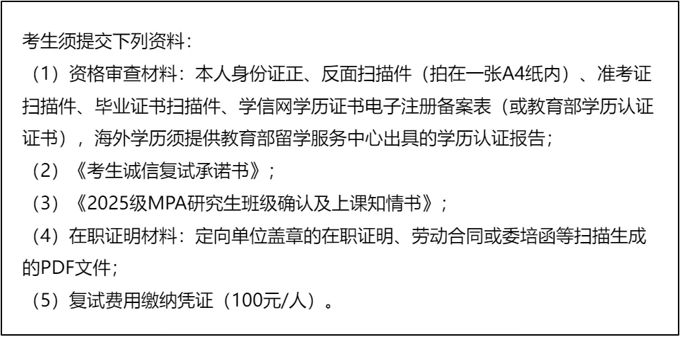 三、 复试资格审查需要准备的材料