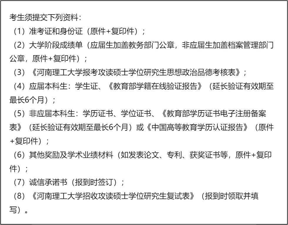 三、 复试资格审查需要准备的材料