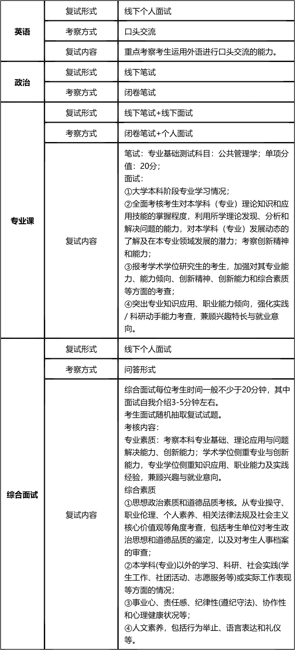 二、 各个学科的复试考察细节
