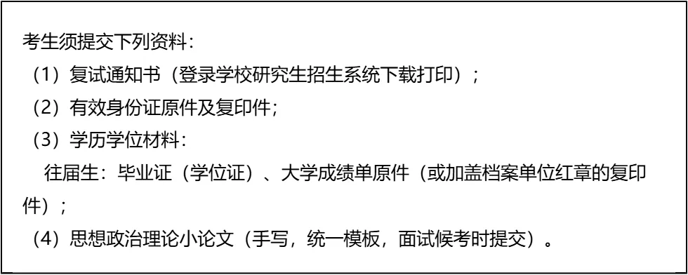 三、 复试资格审查需要准备的材料