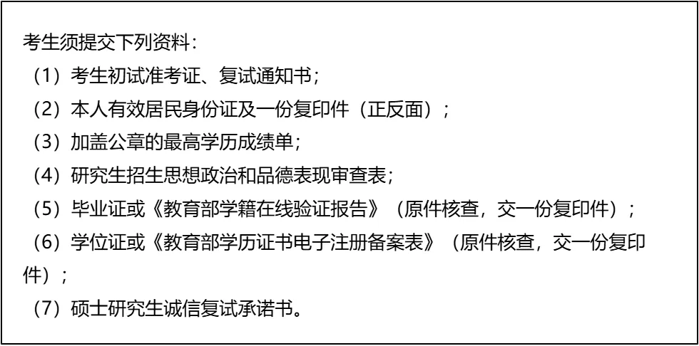 三、 复试资格审查需要准备的材料