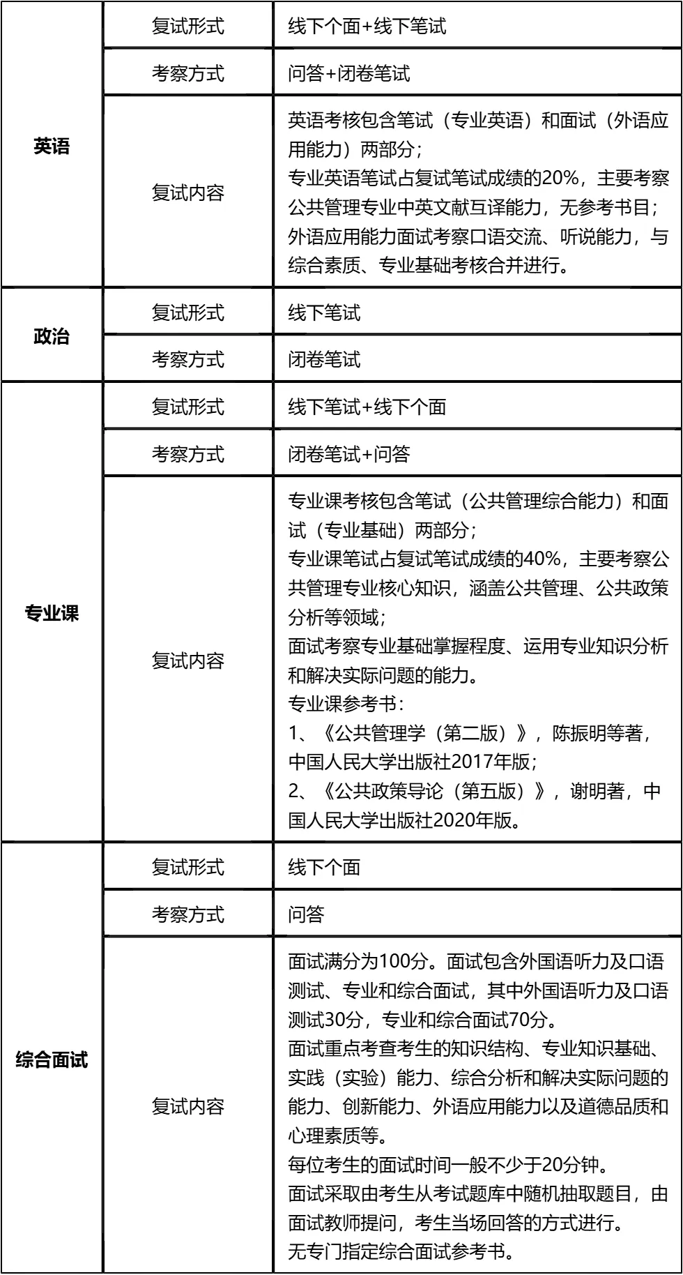 专业课复习要以参考书目为核心,构建知识体系,重点掌握公共管理、公共政策分析等领域的核心理论和实践应用。政治要积累时政素材,训练分析问题的能力;英语要兼顾专业翻译和口语表达,针对性提升。面试要提前模拟抽题应答场景,锻炼临场反应能力和表达能力。
