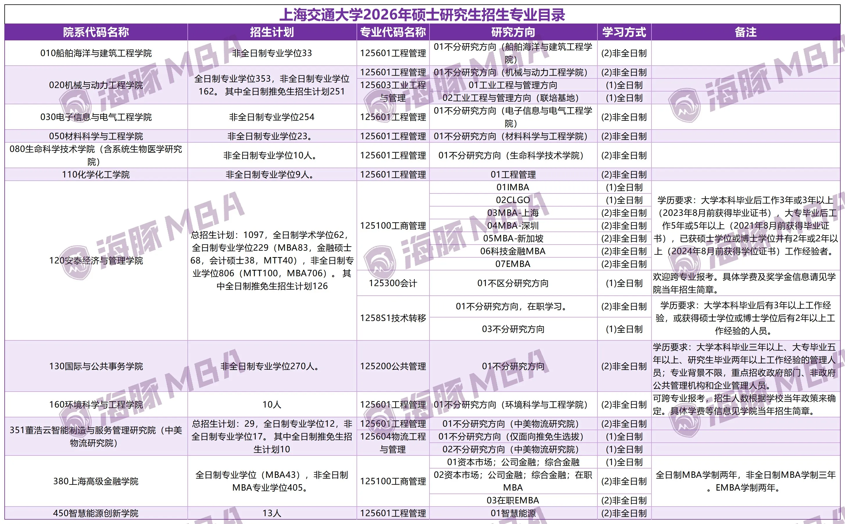 上海交通大学 是管理类联考考生重点关注的院校之一,涵盖 MBA、MPA、MPAcc、MEM 等多个专业方向。 本页面系统整合了院校介绍、专业设置、招生简章、历年分数线及相关资讯与问答内容, 适合作为考生进行院校对比、专业选择与长期信息查询的核心参考入口。
