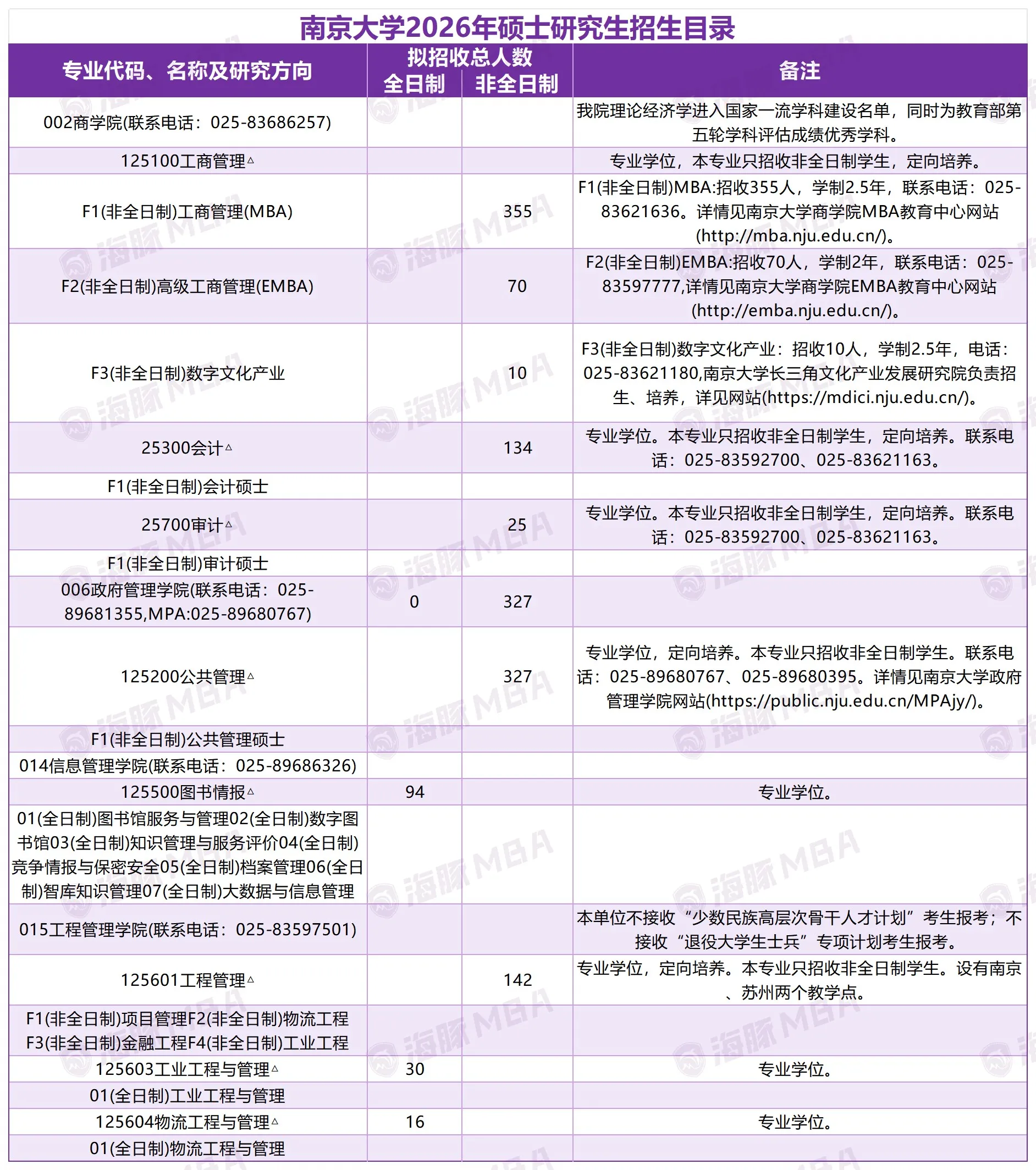 南京大学 是管理类联考考生重点关注的院校之一,涵盖 MBA、MPA、MPAcc、MEM 等多个专业方向。 本页面系统整合了院校介绍、专业设置、招生简章、历年分数线及相关资讯与问答内容, 适合作为考生进行院校对比、专业选择与长期信息查询的核心参考入口。