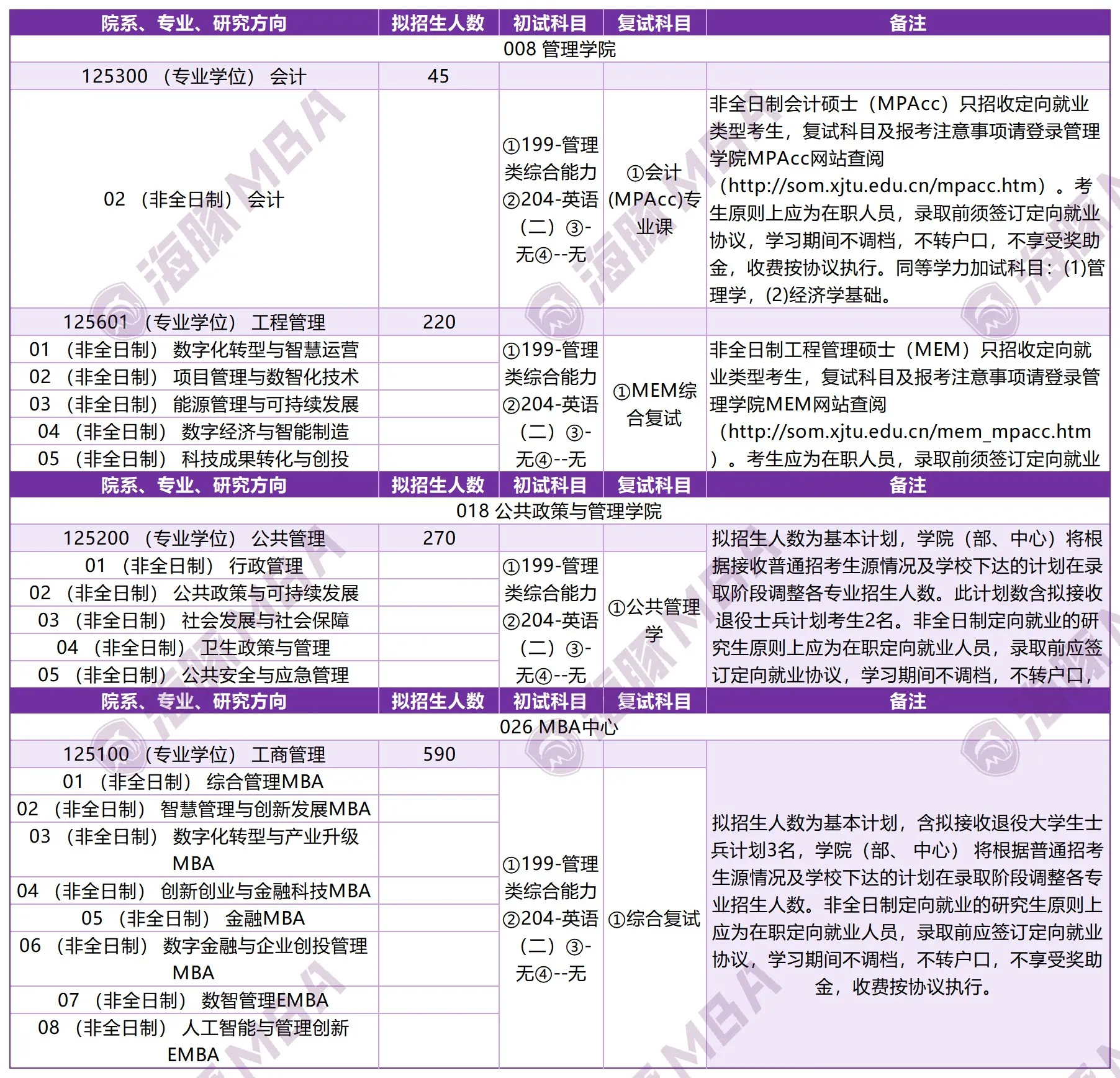 西安交通大学 是管理类联考考生重点关注的院校之一,涵盖 MBA、MPA、MPAcc、MEM 等多个专业方向。 本页面系统整合了院校介绍、专业设置、招生简章、历年分数线及相关资讯与问答内容, 适合作为考生进行院校对比、专业选择与长期信息查询的核心参考入口。