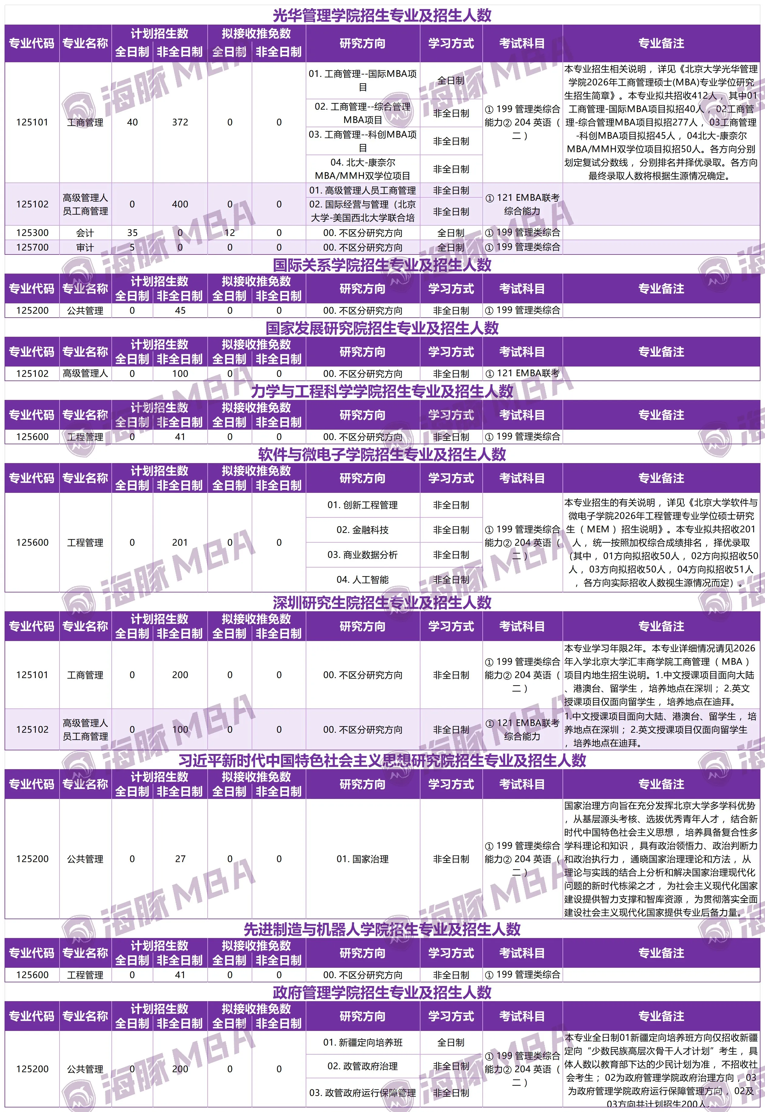 北京大学 是管理类联考考生重点关注的院校之一,涵盖 MBA、MPA、MPAcc、MEM 等多个专业方向。 本页面系统整合了院校介绍、专业设置、招生简章、历年分数线及相关资讯与问答内容, 适合作为考生进行院校对比、专业选择与长期信息查询的核心参考入口。